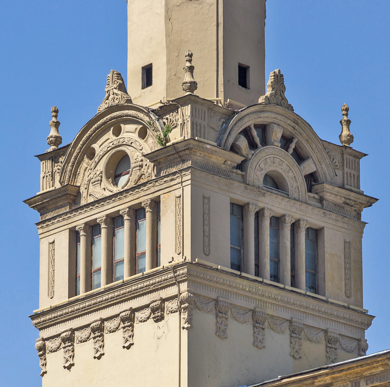 Дом Жолтовского на Смоленке. Угол здания с башней.