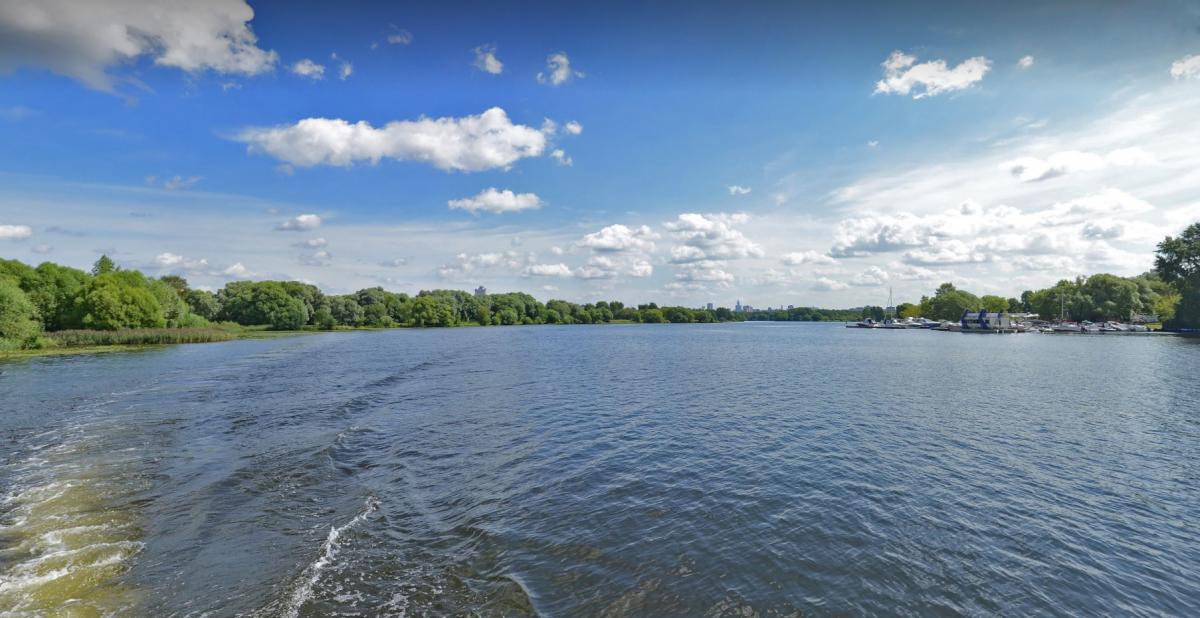 Вид с катера у причала Троице-Лыково на Москве-реке.